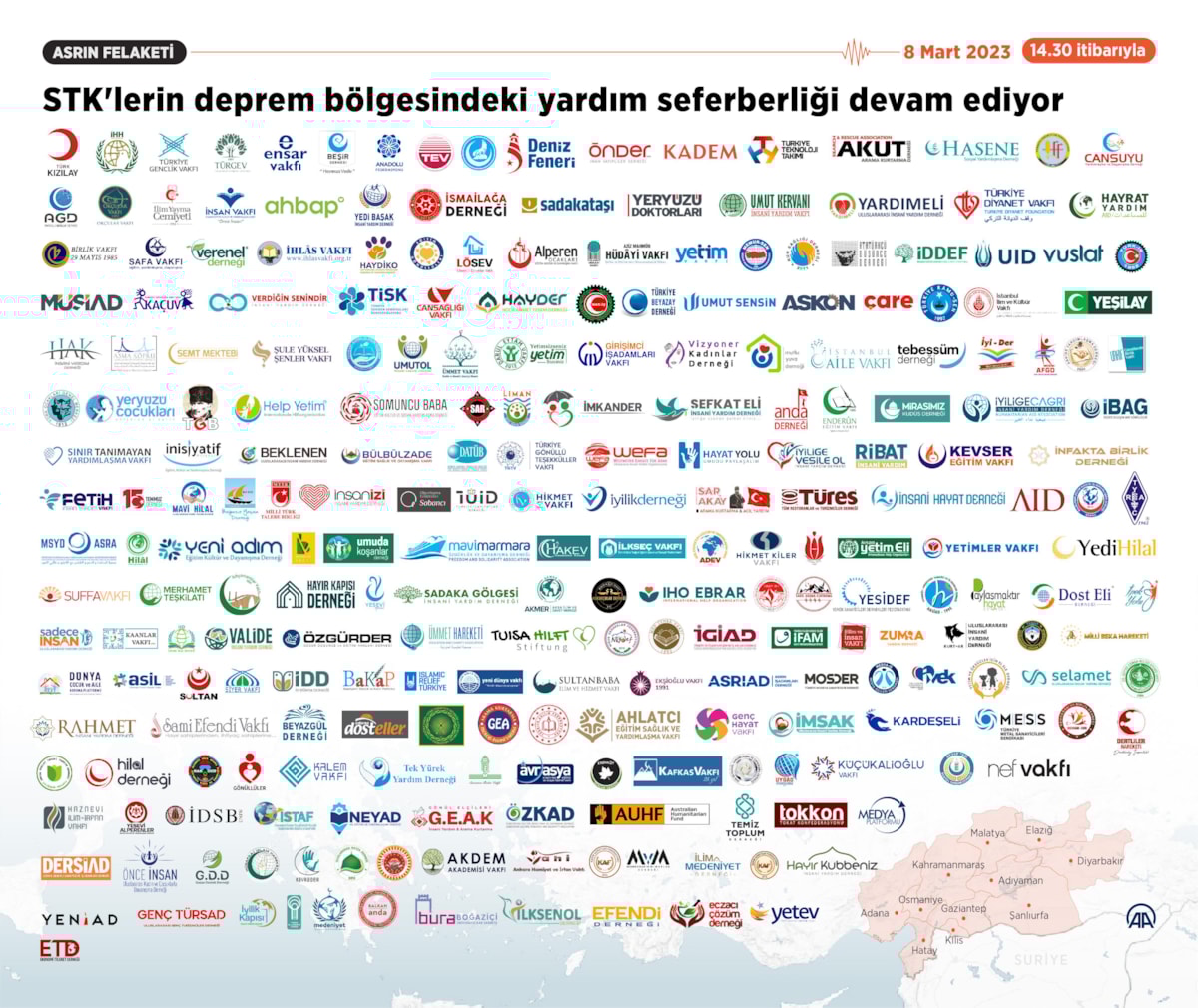 Sivil toplum kuruluşları (STK), Kahramanmaraş merkezli depremlerden etkilenen bölgelerde yaraları sarmak için insani yardım çalışmalarına devam ediyor.