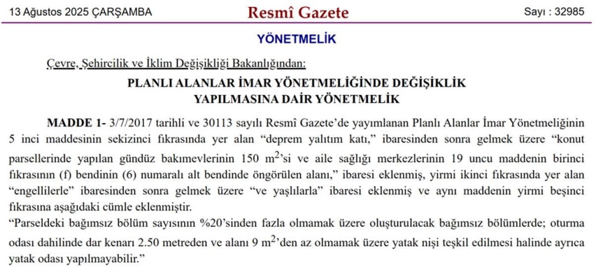 2025 yılında yayımlanan yeni yönetmelik ile stüdyo daire yasağı kaldırıldı. Ancak tamamen serbest bırakılmadı, belirli kurallar getirildi: