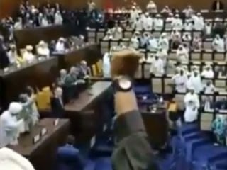 Erdoğan'ın Meclis'ten içeri girmesiyle birlikte herkes ayağa kalktı ve tekbir sesleri yükselmeye başladı.