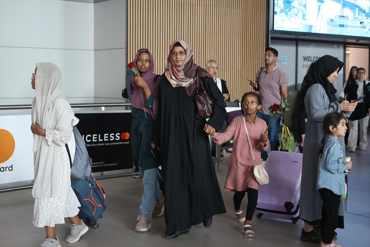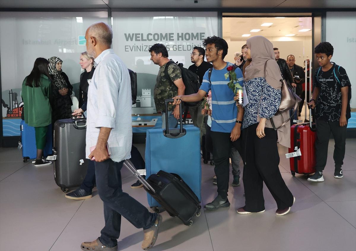 Tahliye edilen 203 kişi, terminalde havalimanının işletmecisi İGA yetkilileri tarafından güllerle karşılandı.