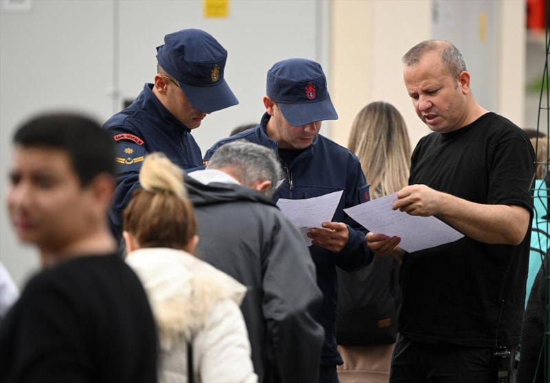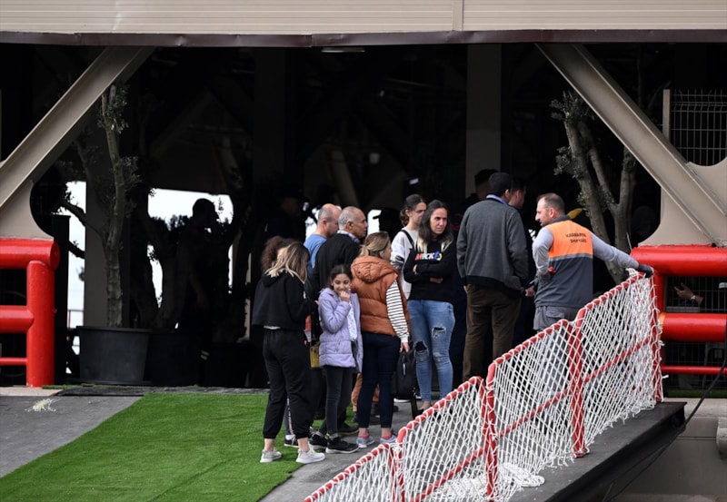 6 Şubat'taki depremlerden etkilenen ve kaldıkları yerlerden otobüslerle limana getirilen afetzedeler, askeri yetkililer tarafından karşılanarak kayıtları yapıldıktan sonra kalacakları odalara yerleştirildi.