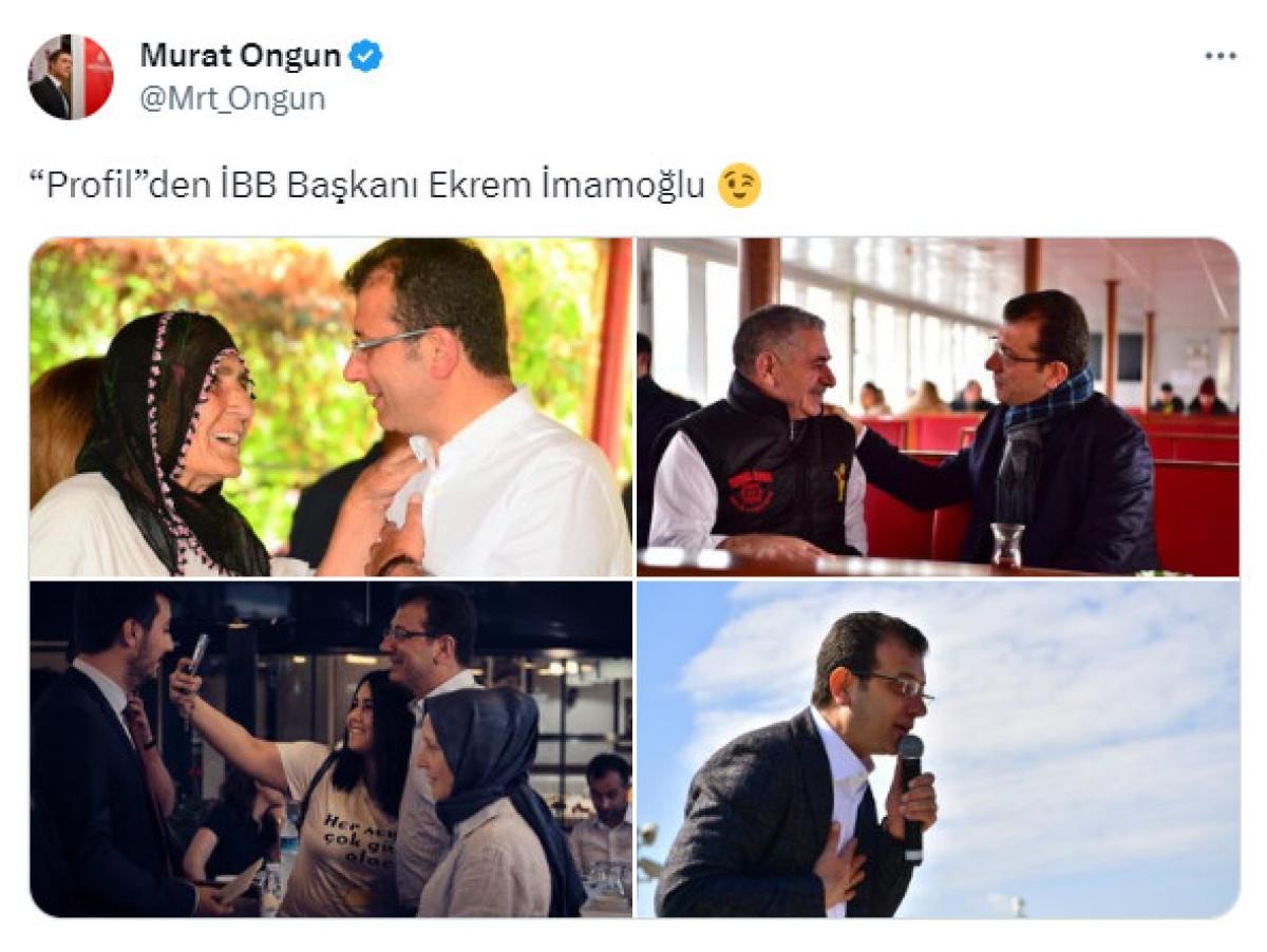 Sosyal medya hesabından paylaşım yapan Ongun, İmamoğlu’nun 4 fotoğrafını paylaşarak, “Profilden İBB Başkanı Ekrem İmamoğlu.” notunu ekledi.