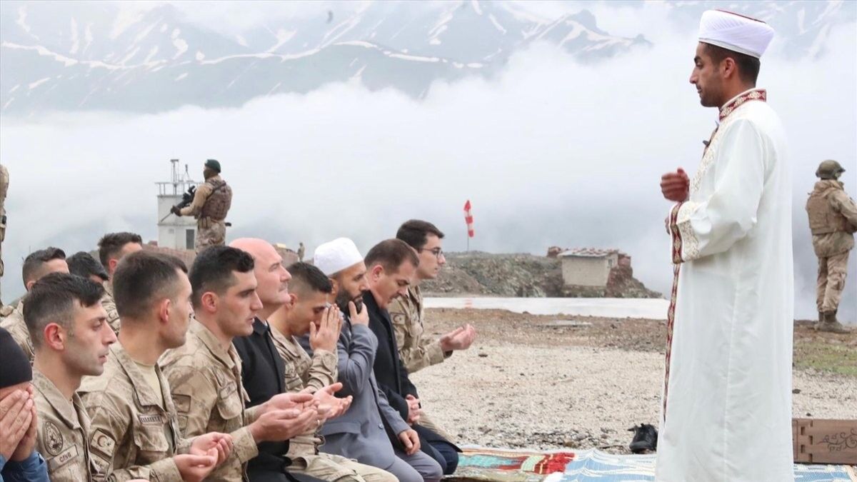 Bayram namazını İran sınırındaki 2 bin 100 rakımlı Zirvin Tepe Üs Bölgesi'nde görevli askerlerle kılan Bakan Soylu, namaz sonrasında İçişleri Bakan Yardımcısı Mehmet Ersoy, Jandarma Genel Komutanı Orgeneral Arif Çetin ve Hakkari Valisi İdris Akbıyık'la birlikte jandarmalarla bayramlaştı.
