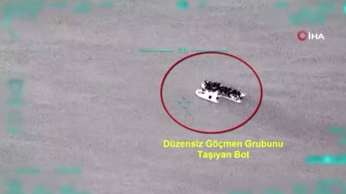 İçişleri Bakanı Süleyman Soylu, Twitter hesabı üzerinden kaçak göçmenlerin Ege Denizi’nin geçmek isterken insansız hava aracı (İHA) tarafından tespit edildiği ve yakalandığı anların görüntülerini paylaştı.