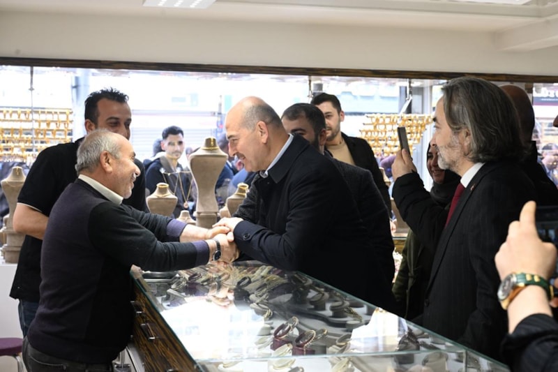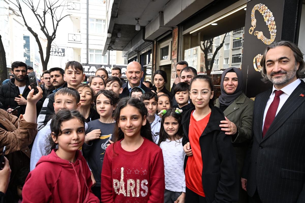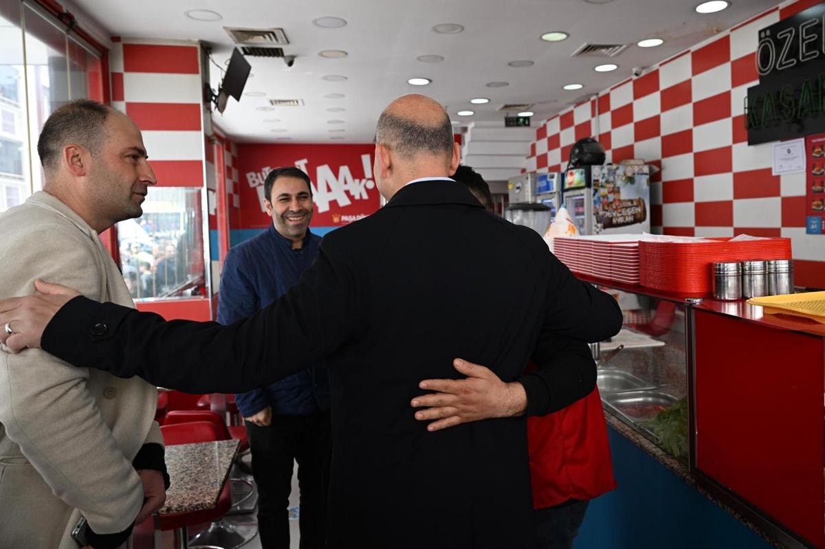 Esnafın sıcak ilgisiyle karşılaşan Soylu, aynı samimiyetle karşılık verdi.