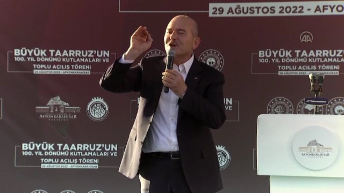 İçişleri Bakanı Süleyman Soylu, Afyonkarahisar'da Cumhurbaşkanı Recep Tayyip Erdoğan'ın katılımıyla Zafer Meydanı'nda düzenlenen 30 Ağustos 1922-2022 Büyük Zafer’in 100. Yılı Etkinlikleri ve Afyonkarahisar Toplu Açılış Töreni'nde yaptığı konuşmada vatandaşları selamladı.