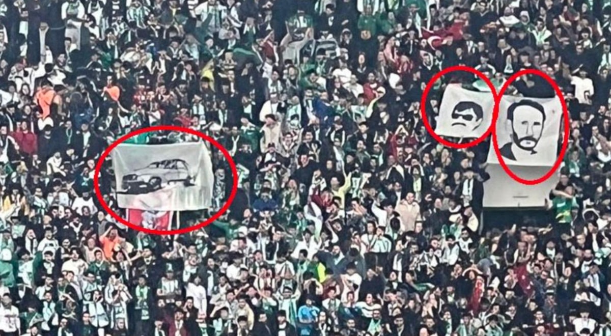 Öte yandan tribünlerdeki bir pankart, ortalığı daha da karıştırdı.