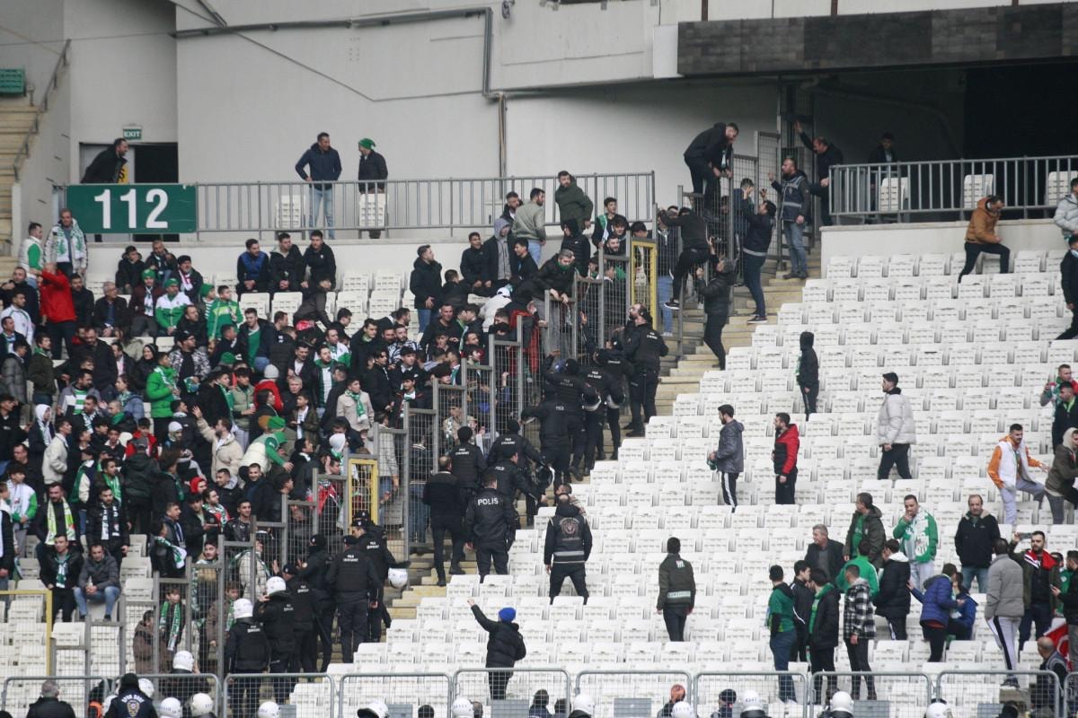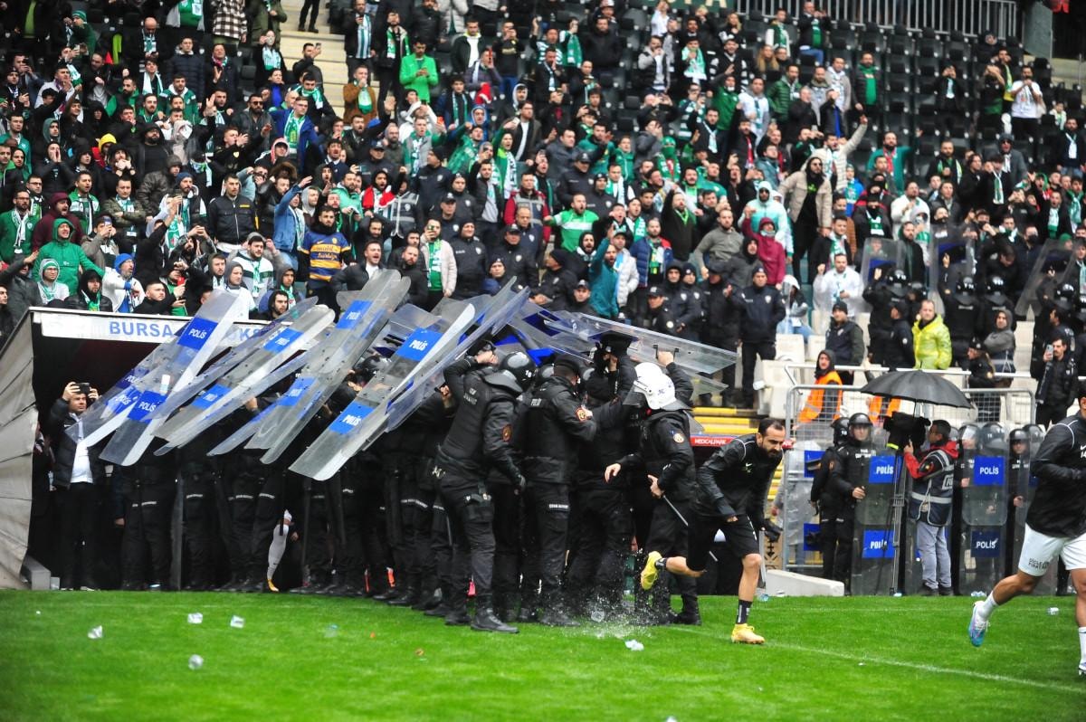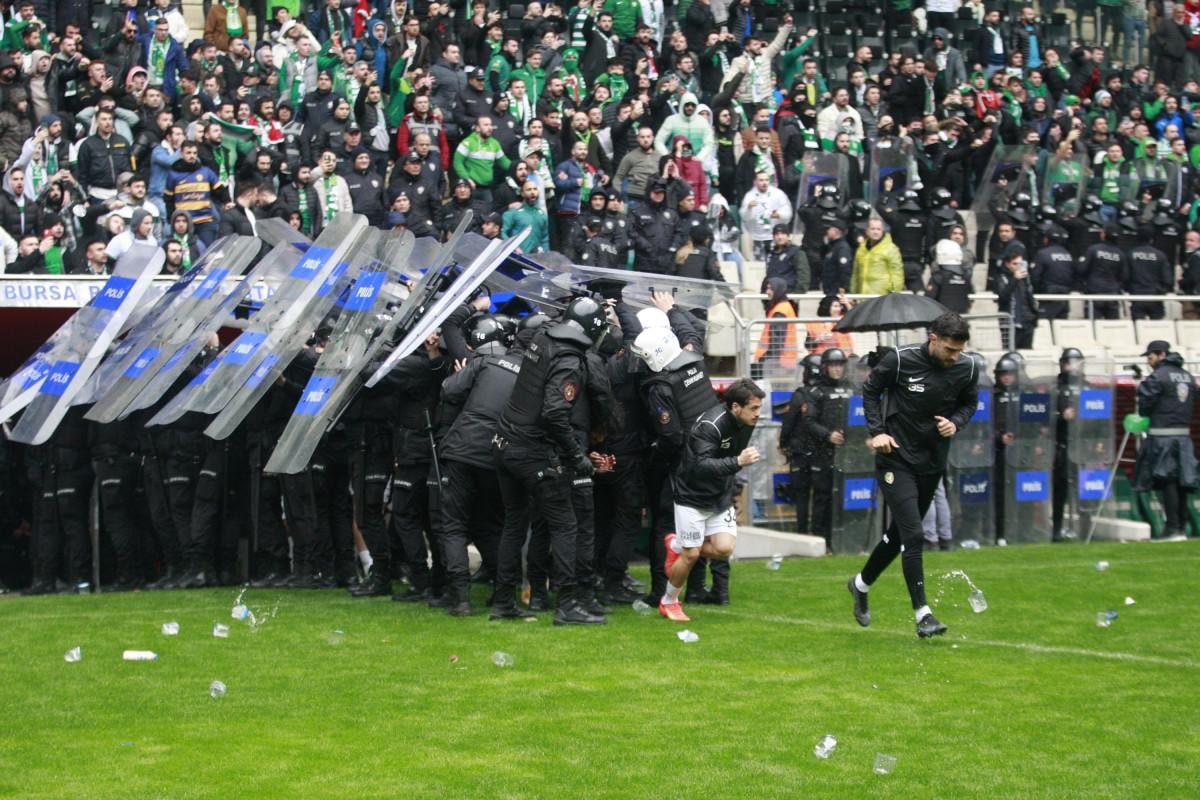 Polisin müdahalesiyle saha içerisindeki arbede sonlandırılırken, her iki takımın oyuncuları soyunma odasına geri döndü.