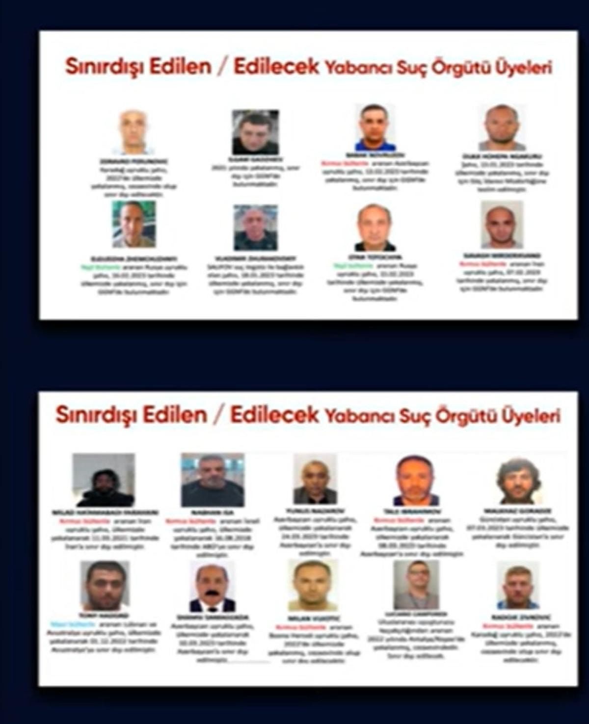 "2019, 2020, 2021 ve 2022'de yakaladığımız bazı suç örgütü liderleri"