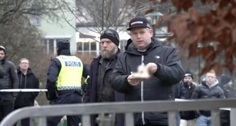 Polis korumasında ırkçı Rasmus Paludan, Türkiye'nin Stockholm Büyükelçiliği önünde Kur'an-ı Kerim yaktı.