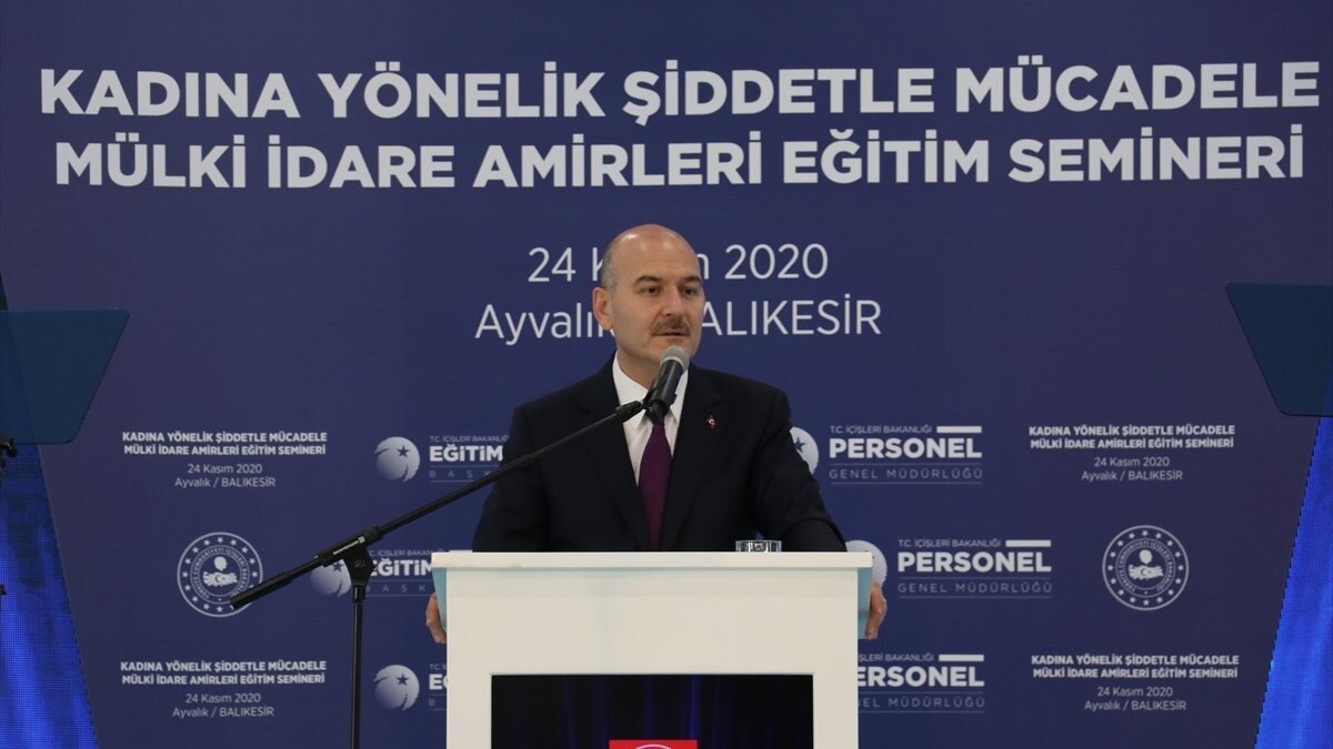 İçişleri Bakanı Süleyman Soylu, Balıkesir'in Ayvalık ilçesinde düzenlenen 'Kadına Yönelik Şiddetle Mücadele Mülki İdare Amirleri Eğitim Semineri'ne katıldı.