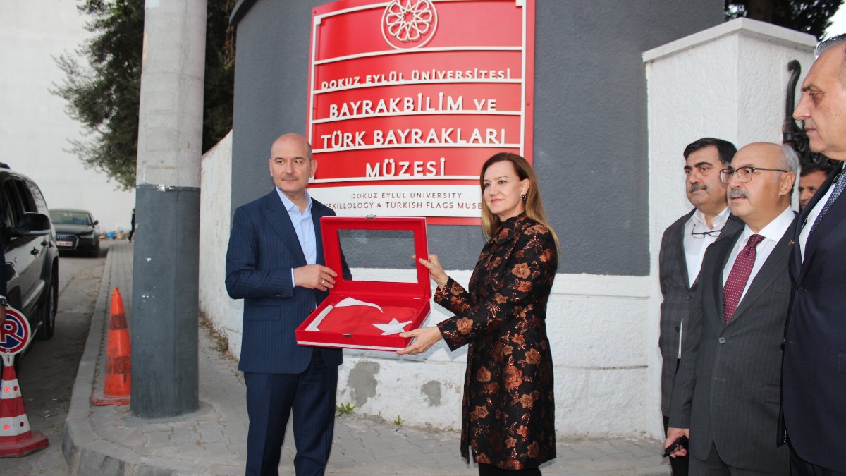 İzmir'de Dokuz Eylül Üniversitesinin (DEÜ) akademik yılı açılış törenine katılan İçişleri Bakanı Süleyman Soylu'nun bir sonraki durağı, Buca ilçesindeki Türkiye'nin ilk ve tek Bayrak Bilim ve Türk Bayrakları Müzesi oldu.