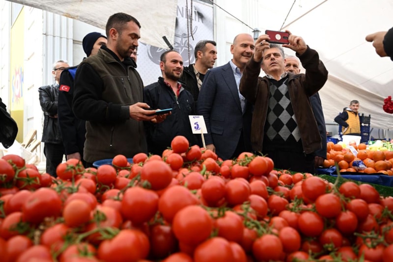 Halk pazarı esnafını gezerek, nabız yoklayan Bakan Soylu, bu anları sosyal medya hesabından da paylaştı.