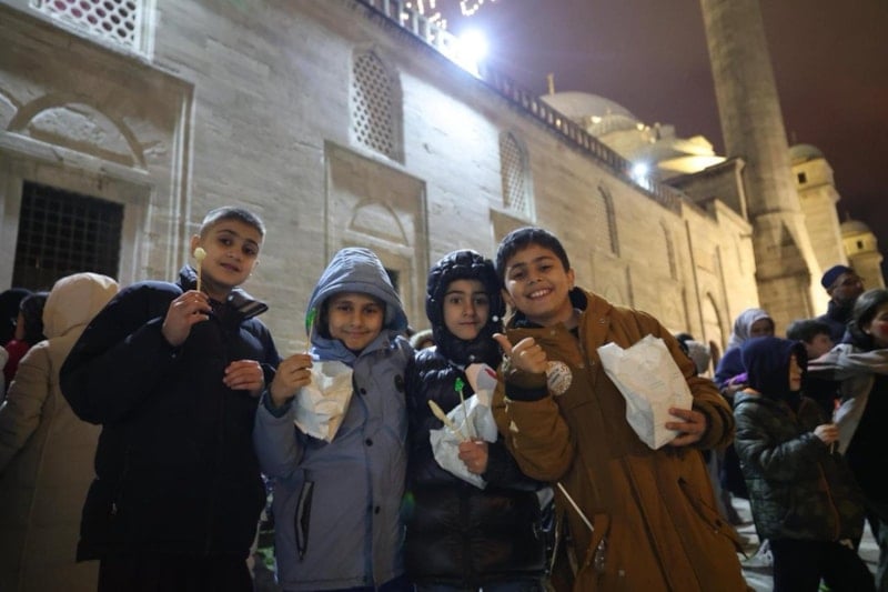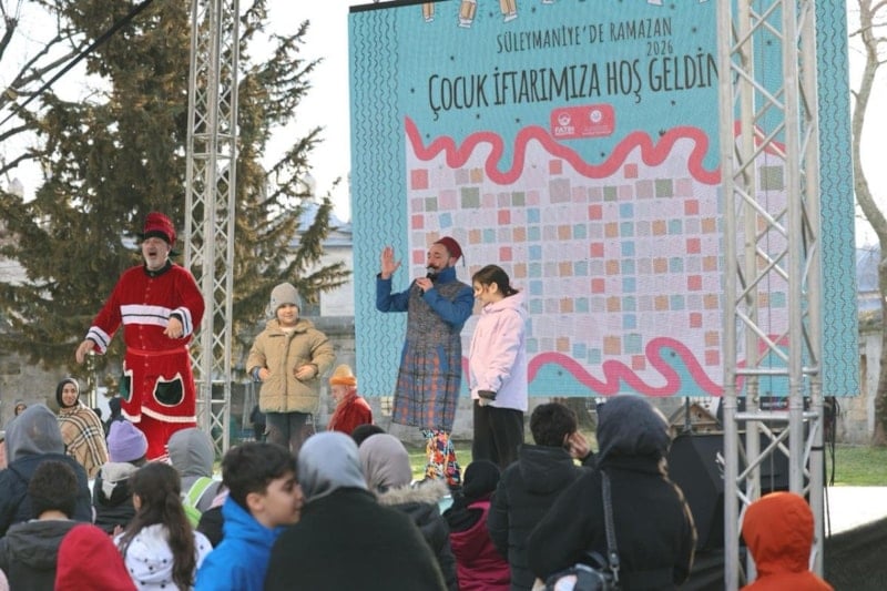 Fatih Belediyesi ve İstanbul İl Müftülüğü iş birliğiyle düzenlenen çocuk iftarı programı kapsamında 3 binden fazla çocuk, Süleymaniye Camii’nde kurulan sofrada bir araya gelerek oruç açtı.