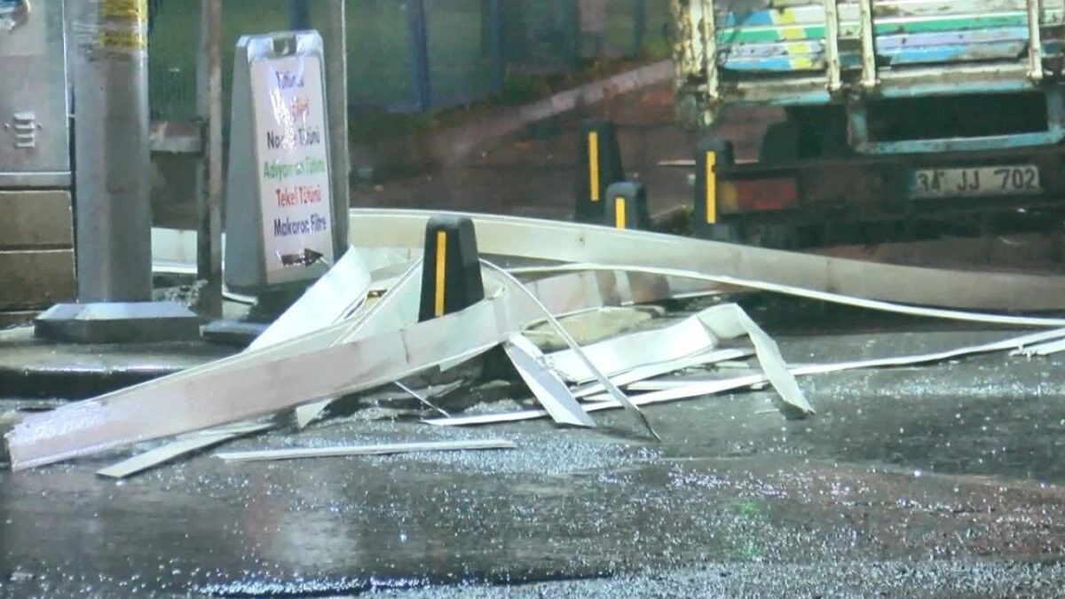 İstanbul'un Sultangazi ilçesine bağlı 1425 Sokak üzerinde bulunan 4 katlı binanın dış cephe kaplaması, şiddetli rüzgar nedeniyle yerinden koptu.