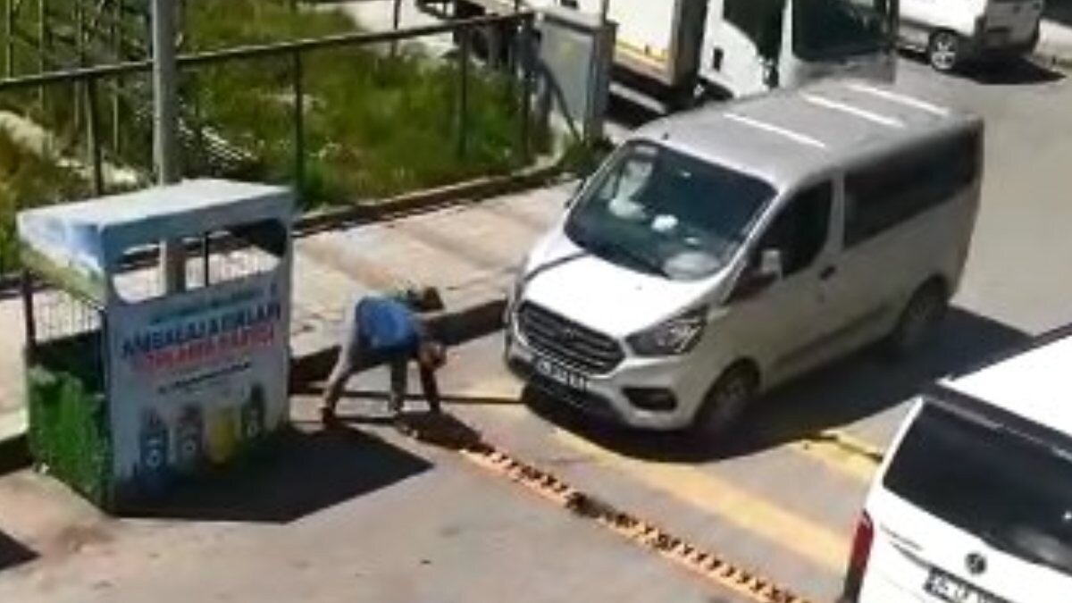 Yoldaki kapanı fark eden sürücü, aracından inip kapanların üzerine kaldırım taşları koydu. Daha sonra aracına binen sürücü, kapanların üzerinden geçerek yoluna devam etti.