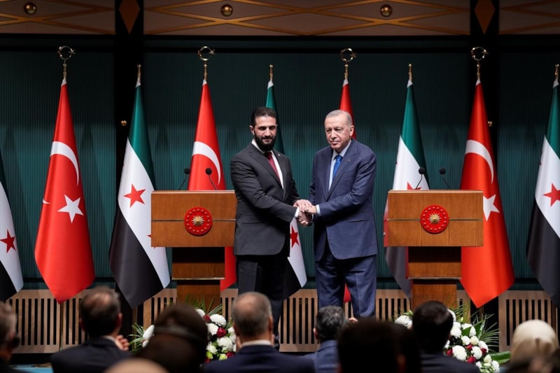 Suriye'nin 61 yıllık Baas rejimi ve 53 yıl süren Esad yönetiminin ardından göreve gelen Suriye Geçiş Dönemi Cumhurbaşkanı Ahmed el-Şara, Türkiye'yi ikinci yurt dışı ziyareti olarak tercih etti. Ziyaretin ardından düzenlenen basın toplantısında, Şara ve Cumhurbaşkanı Recep Tayyip Erdoğan, dünya çapında önemli mesajlar verdi.