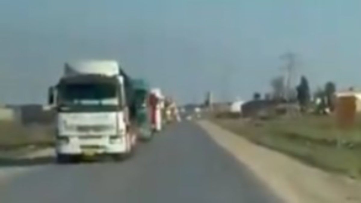 Bu açıklamaların ardından, ABD'nin PKK'lı teröristler için Suriye'ye getirdikleri yardım konvoyu kameralara yansıdı.