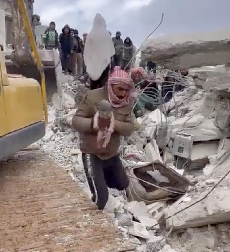 Türkiye'deki depremin etkilediği Suriye'de enkaz altında kalan hamile kadın burada doğum gerçekleştirdi. Anne hayatını kaybederken, bebeği sağ kurtarıldı.