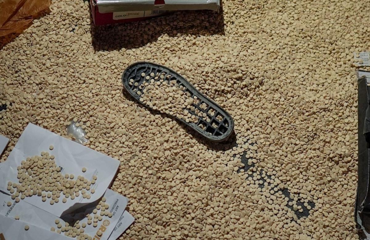 Askeri üsteki başka bir hangarda ise, çok sayıda ayakkabı kutusu bulundu. Çuvallar dolusu captagonun nakliye için ayakkabı tabanlarına yerleştirildiği ifade ediliyor. Etrafta aynı şekilde uyuşturucu nakliyesinde kullanılmak üzere yatak şiltelerinin dizildiği görülüyor.