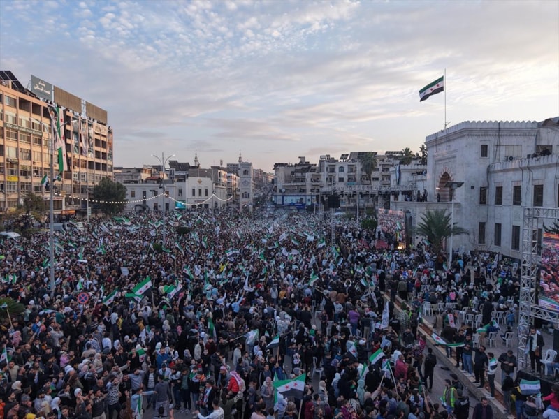 Suriye’nin başkenti Şam’da, 61 yıllık Baas rejiminin devrilmesinin birinci yıl dönümü coşkuyla kutlanıyor.