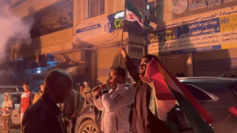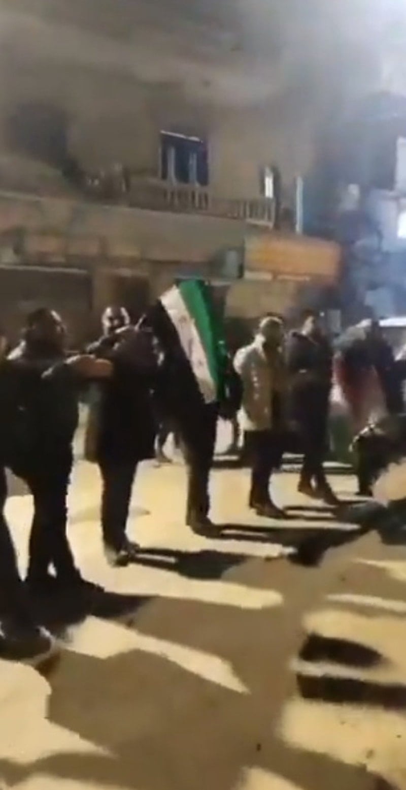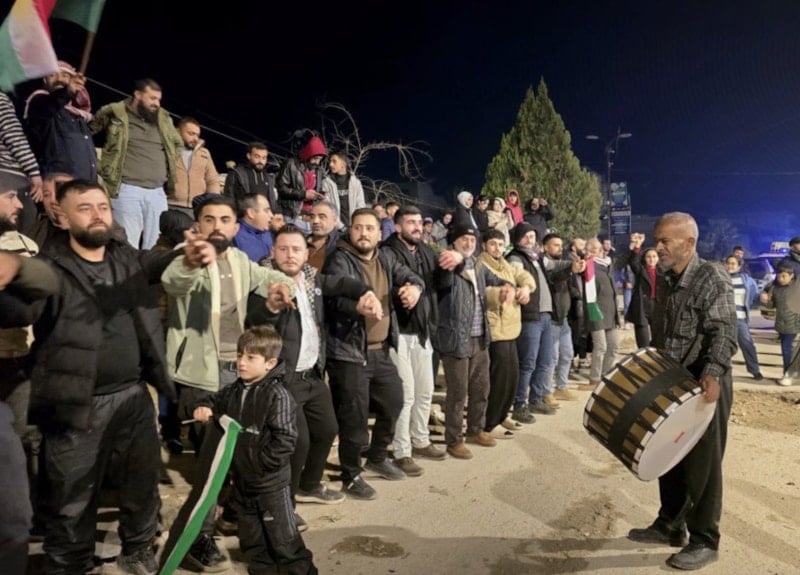 Afrin'de toplanan Kürt vatandaşlar, davul ve zurnalar eşliğinde uzun süre Şara'nın imzaladığı kararnameyi kutladı.