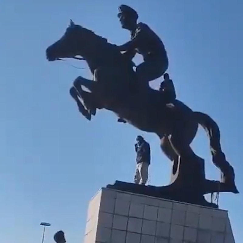 Daha sonra ise Halep'te kontrol altına alınan noktalardan biri olan Basil Kavşağı'ndaki Hafız Esad heykeli indirilmeye çalışıldı.