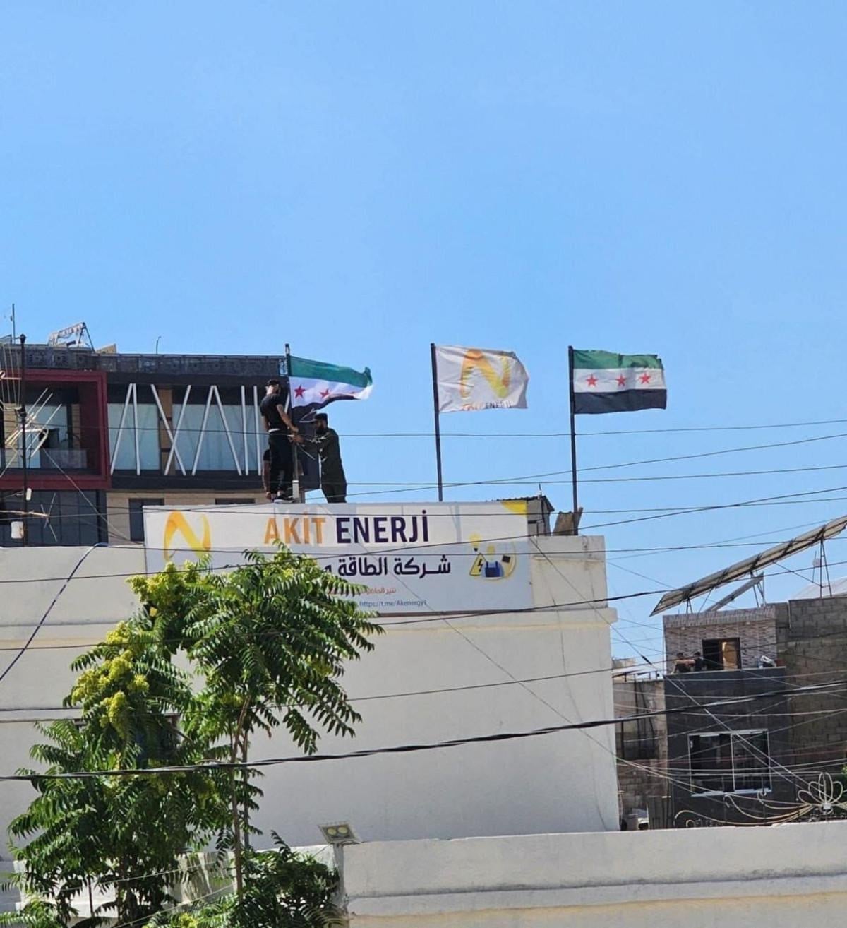 Diğer yandan harekat bölgelerine elektrik sağlayan dağıtım şirketinden ve El-Bab'da mültecilerin bulunduğu Şamrak kampında, Türk bayrağı indirilip parçalandı.
