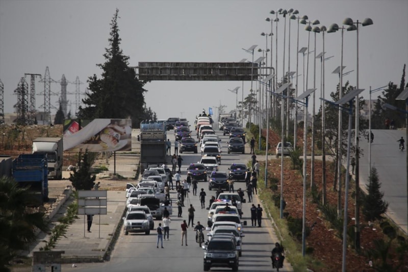 Yaklaşık 250 teröristi taşıyan ve toplam 35 araçtan oluşan ilk konvoy, Halep'ten ayrıldı. Konvoyda üzerine ağır silah yerleştirilmiş askeri araçlar ve içinde silah veya mühimmat olduğu düşünülen brandalı bir kamyon yer aldı.