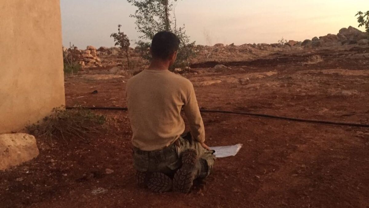 Fırat Kalkanı bölgesinde çekilen bir fotoğrafta, Mehmetçik'in toprak üzerinde namazını kıldığı görülüyor.