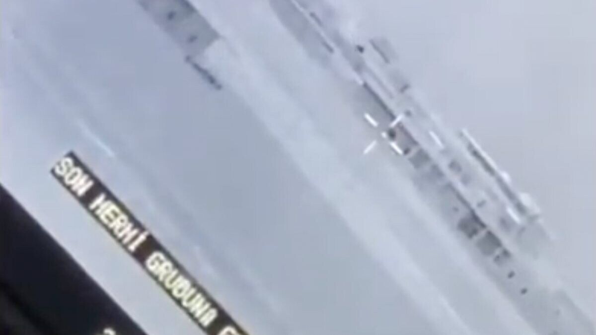 Görüntülerde, teröristleri bombardıman altına alan Türk askerlerinin üzerine füze atılıyor.
