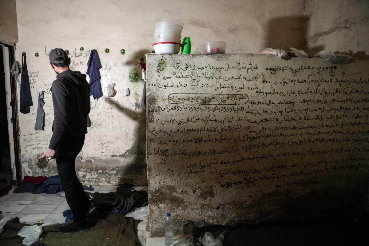 Şam’ın merkezinde yer alan Mezze Hapishanesi’nde de mahkumların tutulduğu hücreler görüntülendi.
