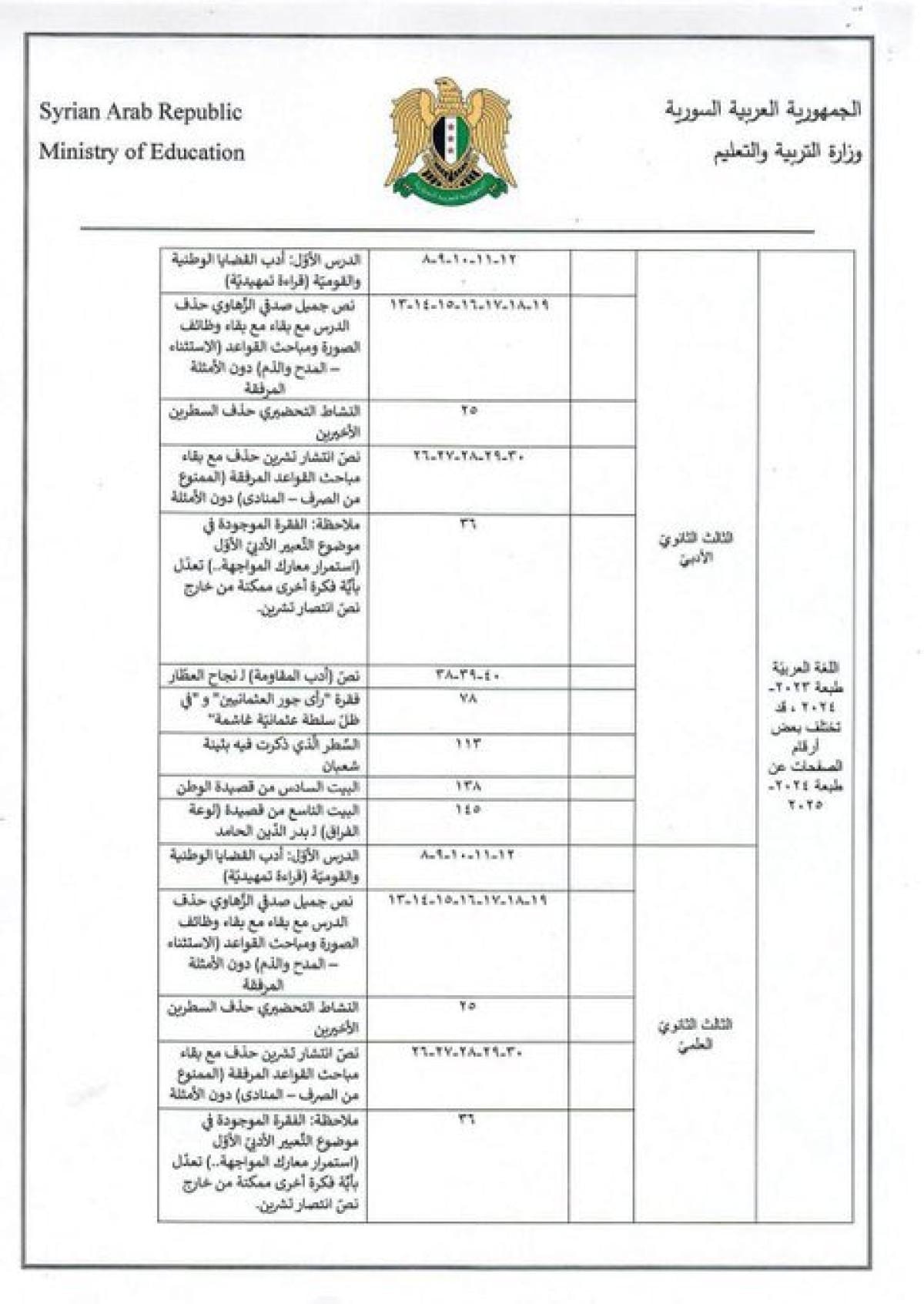 Yeni Suriye Milli Eğitim Bakanlığı, müfredatta değişiklikler yaptı. Tarih kitaplarında "Osmanlı İşgali" ifadesi, "Osmanlı Yönetimi" olarak değiştirildi