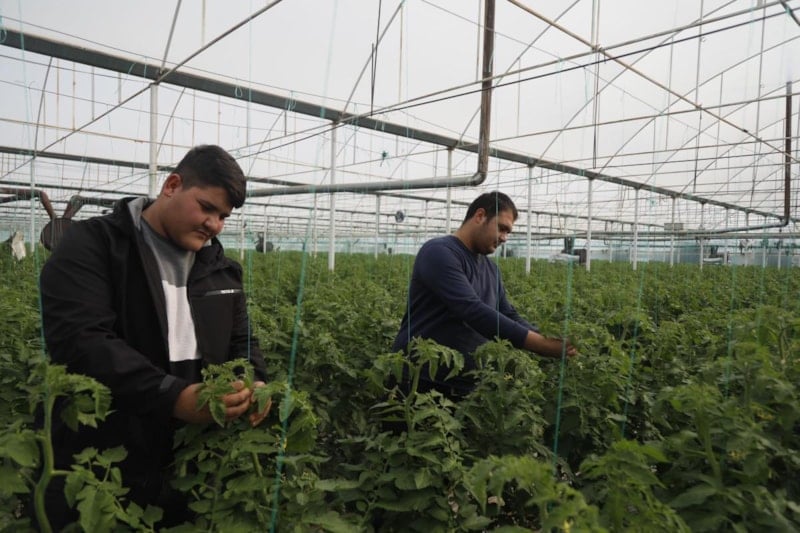 25 dönüm serada domates ürettiğini belirten Mehmet Yılmaz, Suriyeli işçilerle 5 yıldır birlikte çalıştıklarını söyledi.