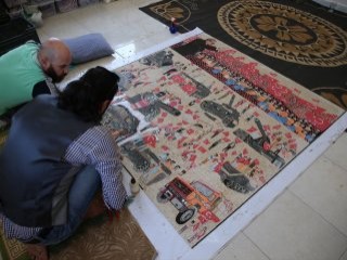 Sattuf, darbe girişiminde yaşananlara ilişkin 17 fotoğrafı, 2 metre boyunda ve 2 metre enindeki mozaik eserine yansıttı.