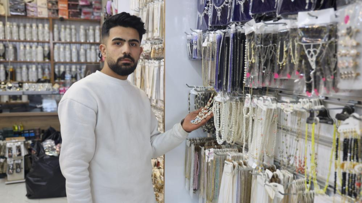 İş yerinde giyim malzemeleri satan genç esnaf Cuma Halilo, Ramazan Bayramı'nda ülkesine gidecekken kuruyemişçide çalışarak geçimini sağlayan genç esnaf Samir Tahhan ise Kurban Bayramı'nda ülkesine dönmek için gün sayıyor.