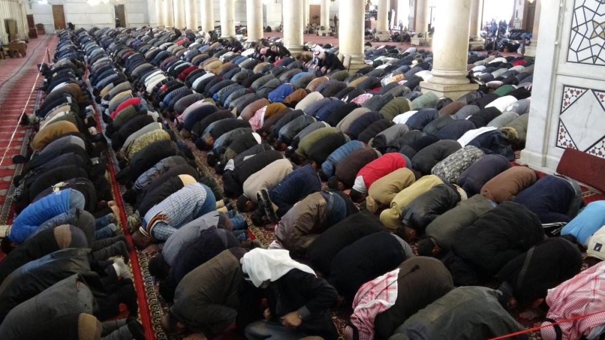 Suriyelilerin yanı sıra birçok farklı ülkeden geleler cuma namazını yan yana saf tutarak Emevi Camii’nde kıldı.