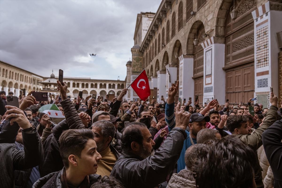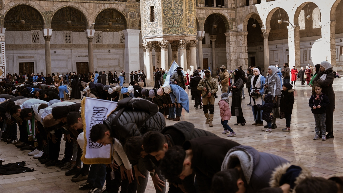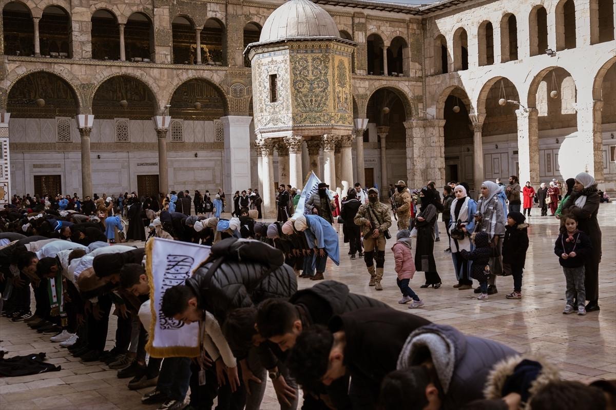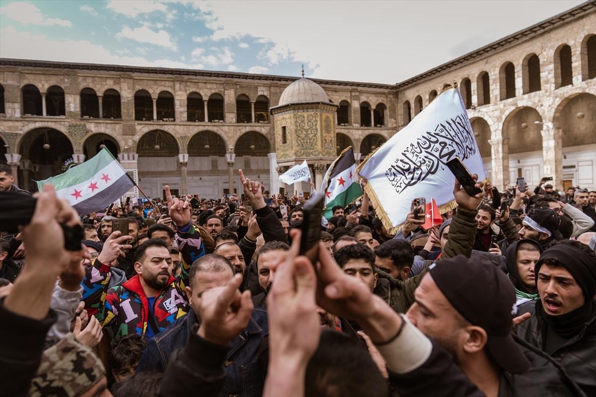 Suriye'nin başkenti Şam'da halk, Esad rejiminin ardından üçüncü cuma namazını kılmak üzere tarihi Emevi Camii'ne akın etti.