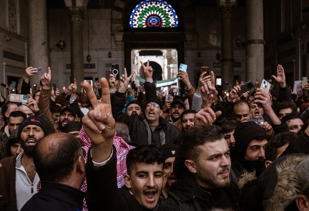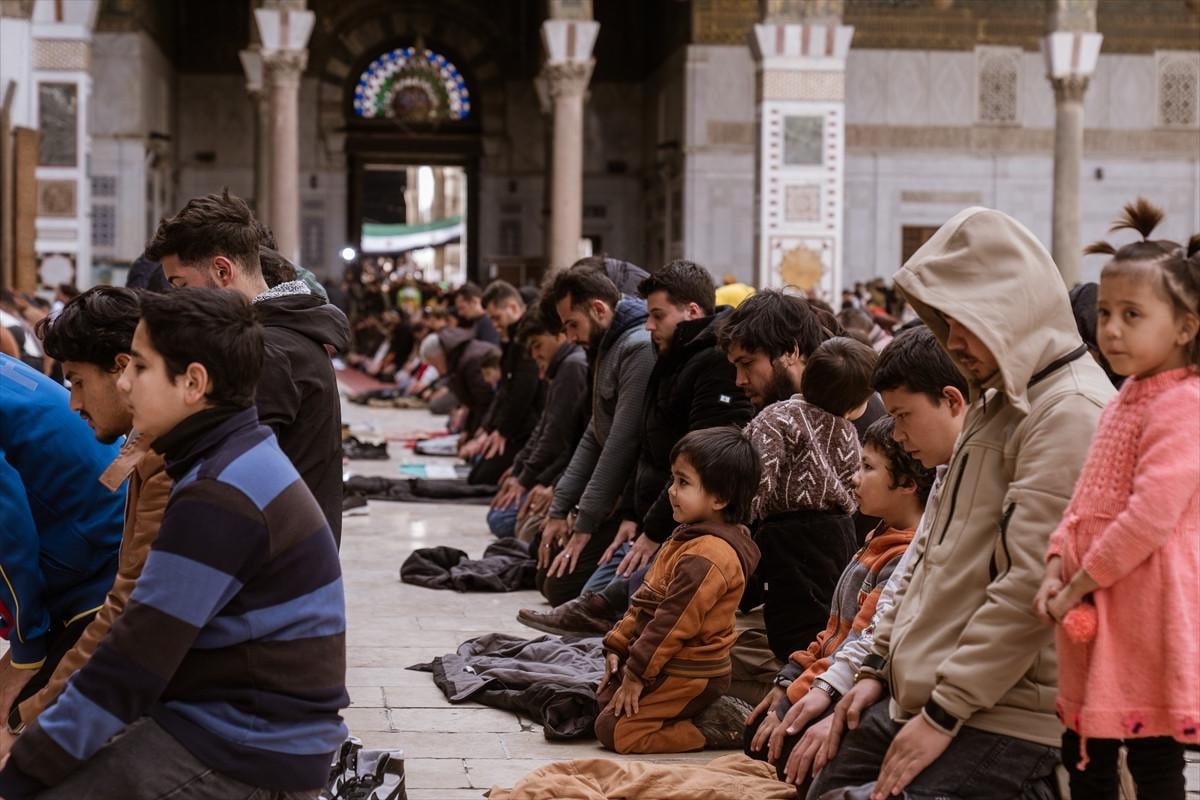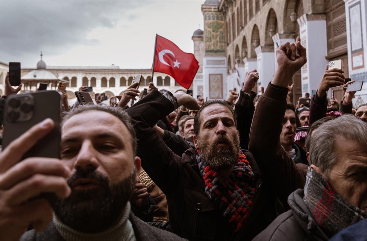 Suriye'nin başkenti Şam'da halk, Esad rejiminin ardından üçüncü cuma namazını kılmak üzere tarihi Emevi Camii'ne akın etti.