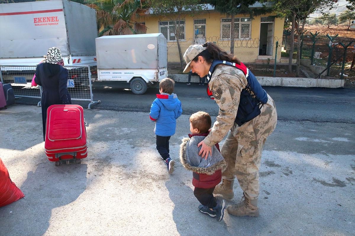 Ülkelerine dönen Suriyelilerin yanlarında götürdükleri kıyafet ve ev eşyalarının taşınmasına, jandarma ve İl Göç İdaresi Müdürlüğü ekipleri de tekerli sepetlerle yardımcı oluyor.
