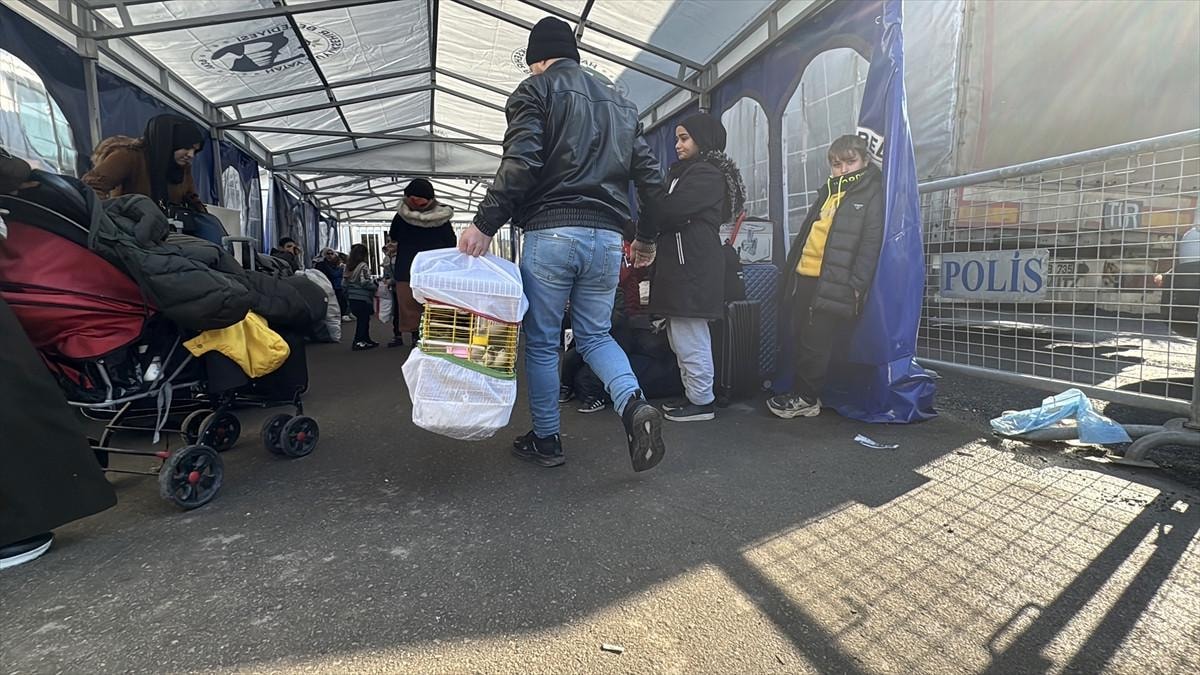 Kilis'teki Öncüpınar Gümrük Kapısı'nda ve Cilvegözü Sınır Kapısı'nda yoğunluk oluşturan Suriyeliler, Geri Gönderme Merkezi'ndeki işlemlerinin ardından ülkelerine gidiyor.