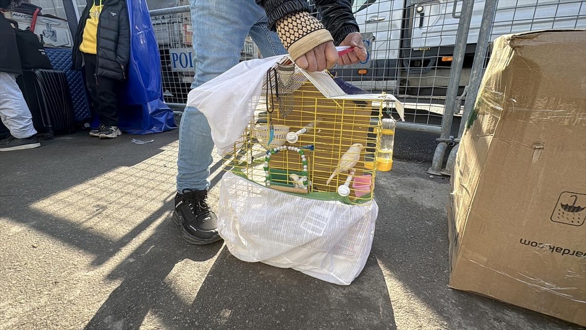 Sınır kapısına gelen Suriyelilerden Vahid Gerer, kafesteki kanaryalarıyla memleketi Humus'a gitti.