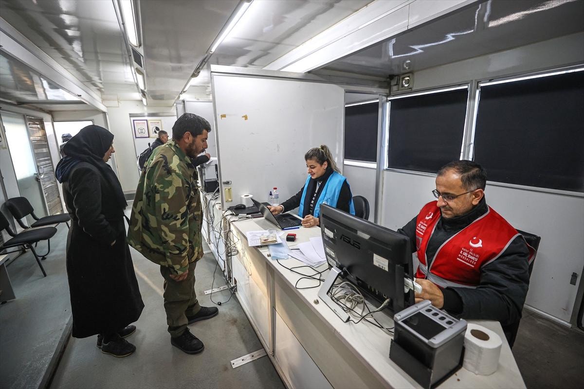 Sınır kapılarına konuşlandırılan Göç İdaresi Mobil Hizmet Birimi araçları, çıkış işlemlerinin hızlanmasına katkı sunuyor.