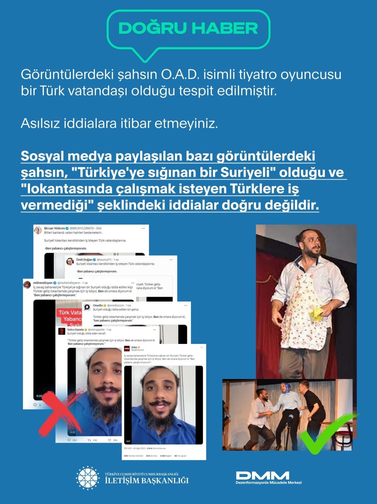 Dezenformasyonla Mücadele Merkezi tarafından yayınlanan açıklamada videodaki kişinin Suriye vatandaşı değil Türk vatandaşı olduğu belirtildi.
