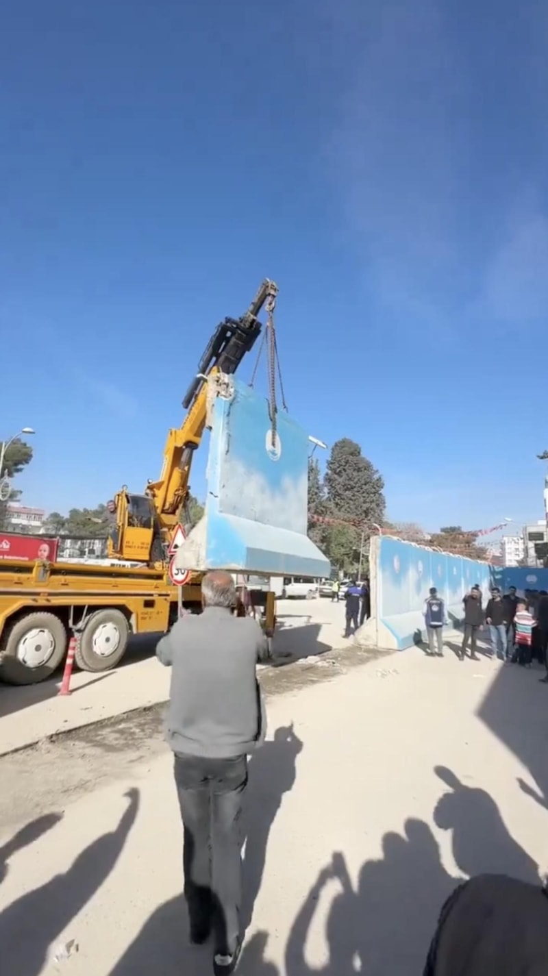 Beton bariyerlerin kaldırılma anı böyle görüntülendi.