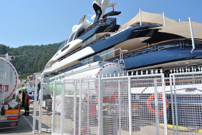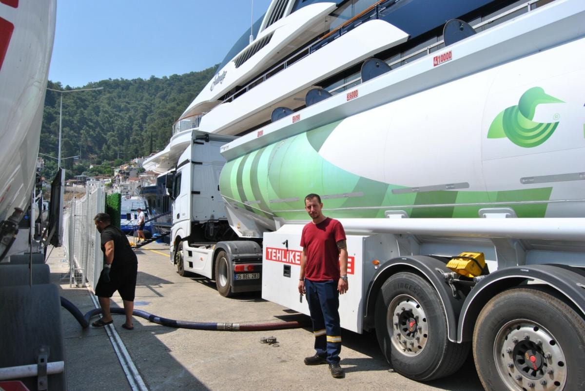 'Malta' bayraklı ve 85 metre uzunluğundaki yat için İzmir Aliağa'dan 6 tırla getirilen 140 ton akaryakıt, karadan ikmal edildi.