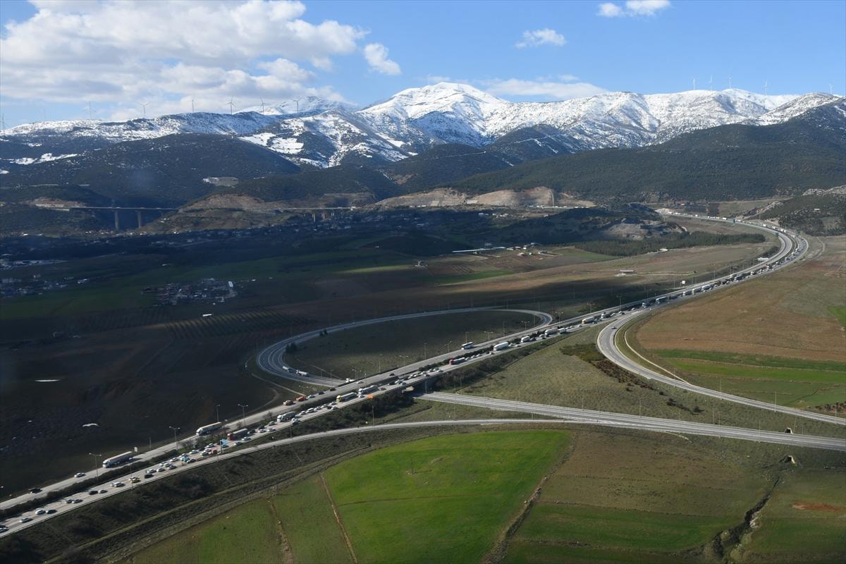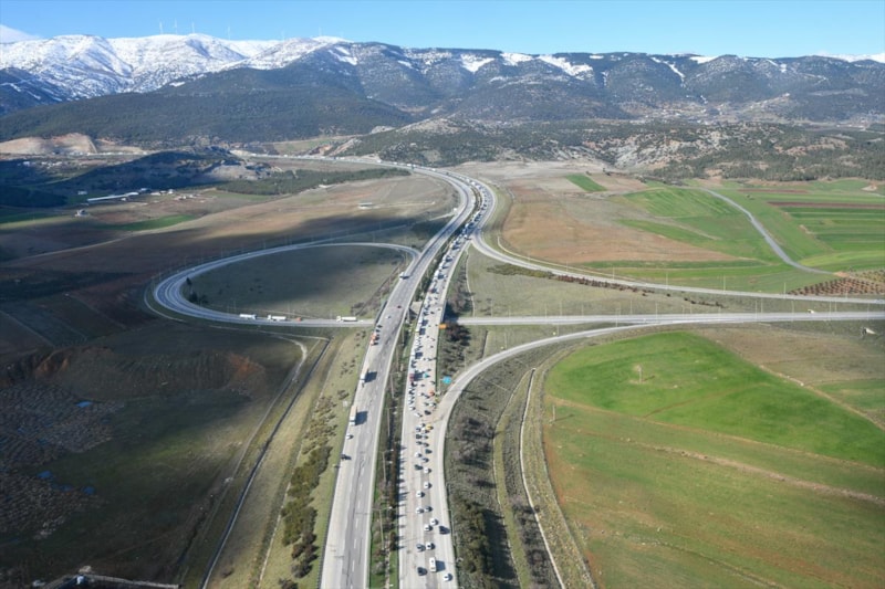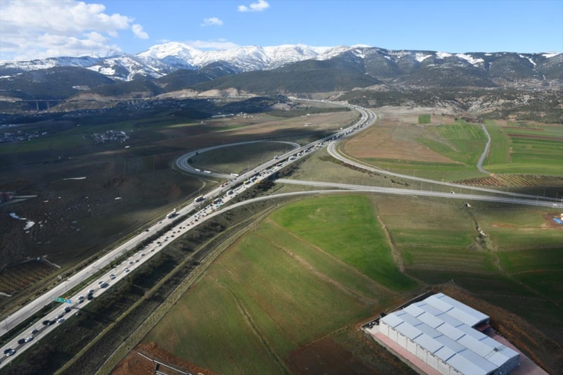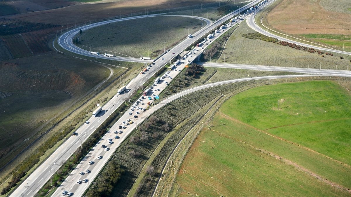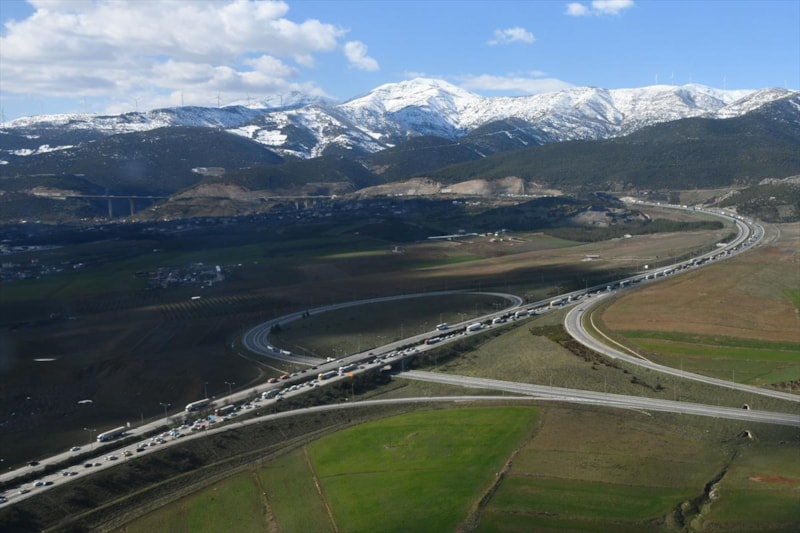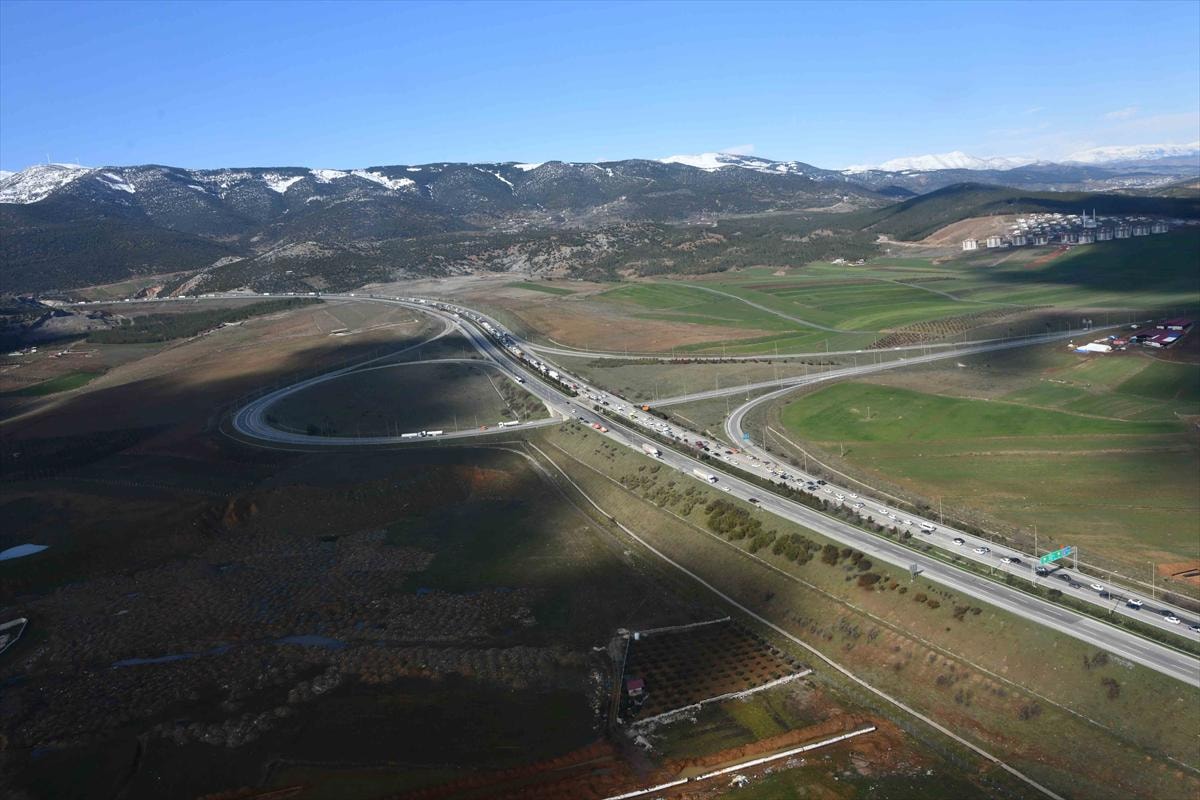 Tarsus-Adana-Gaziantep (TAG) Otoyolu'nun Nurdağı kısmında yaşanan yoğunluk helikopterden görüntülendi.