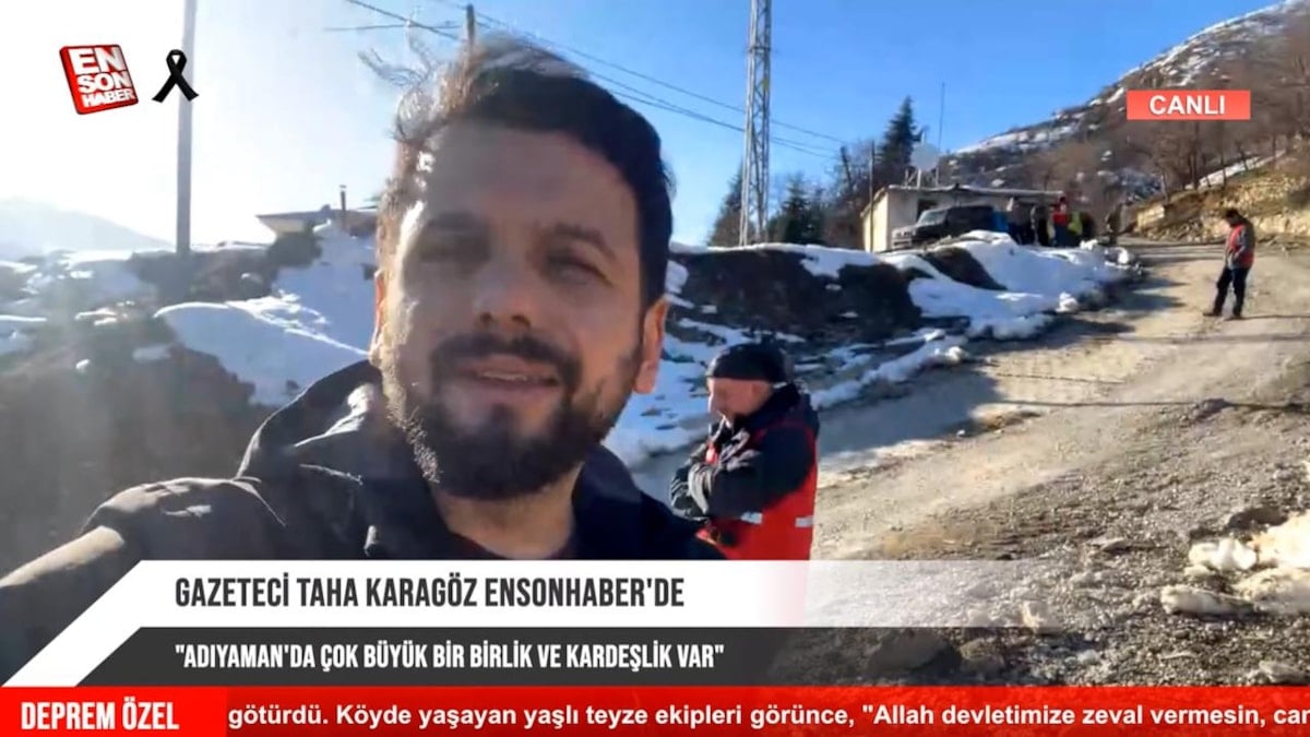 Depremin ilk gününden itibaren bölgede olan Gazeteci Taha Karagöz, Ensonhaber.com YouTube yayınına katılarak izlenimlerini anlattı.
