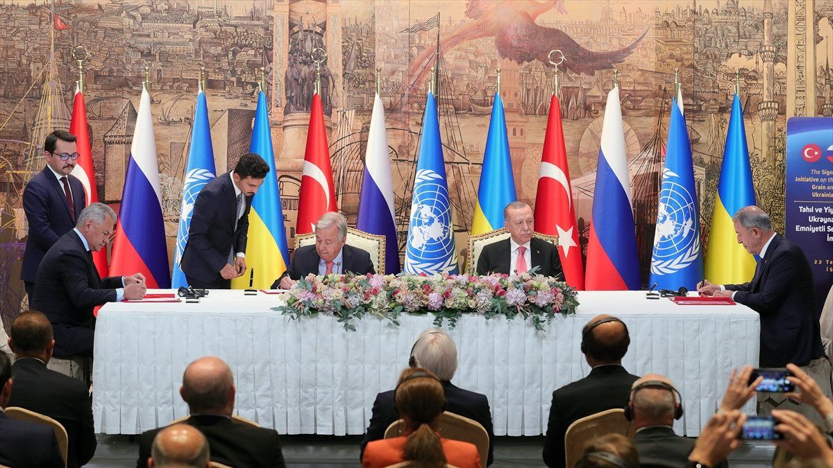 Cumhurbaşkanı Recep Tayyip Erdoğan'ın himayelerinde, İstanbul'da, Türkiye, Rusya, Ukrayna ve Birleşmiş Milletler (BM) arasında "Tahıl ve Yiyecek Maddelerinin Ukrayna Limanlarından Emniyetli Sevki Girişimi Belgesi" imzalandı.