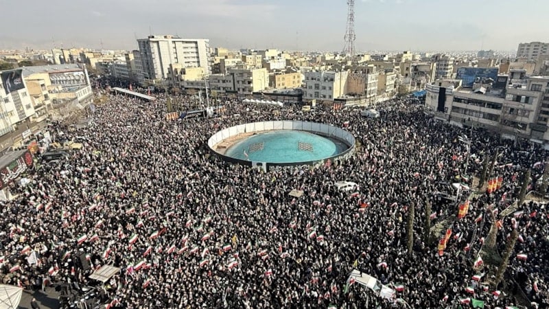 İran'da Hamaney'in öldürülmesinin ardından, oğlu Mücteba Hamaney'in yeni dini lider seçilmesiyle Tahran meydanları on binlerce kişiyle doldu. Siyah yas kıyafetleri ve İran bayrakları arasında hem yas tutuldu hem de yeni lidere biat için gövde gösterisi yapıldı.
